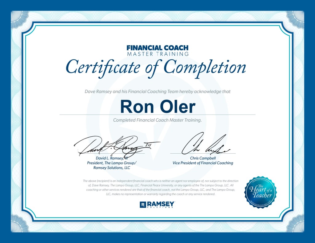 As a Ramsey Solutions Master Financial Coach, I can help you get out of debt too. I can help you save more, spend less, and “make your money mind”.